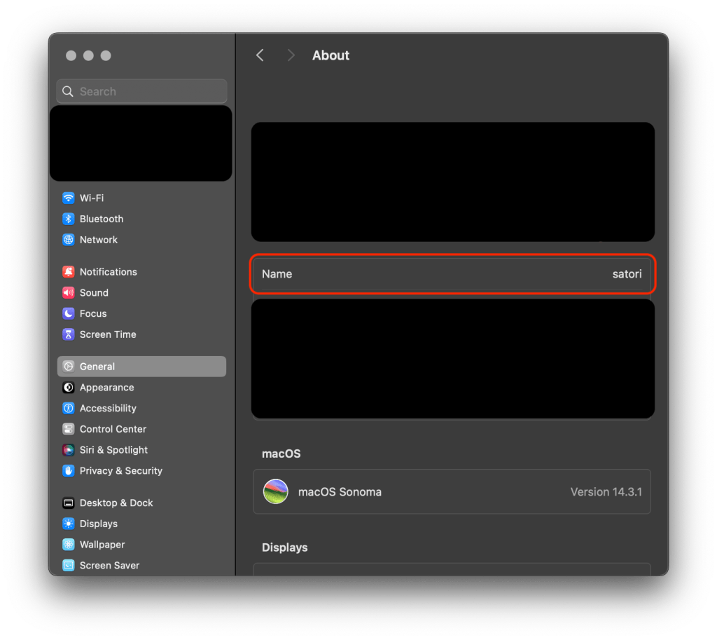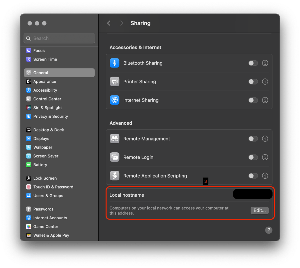 Settings > General > Sharing > Local hostname