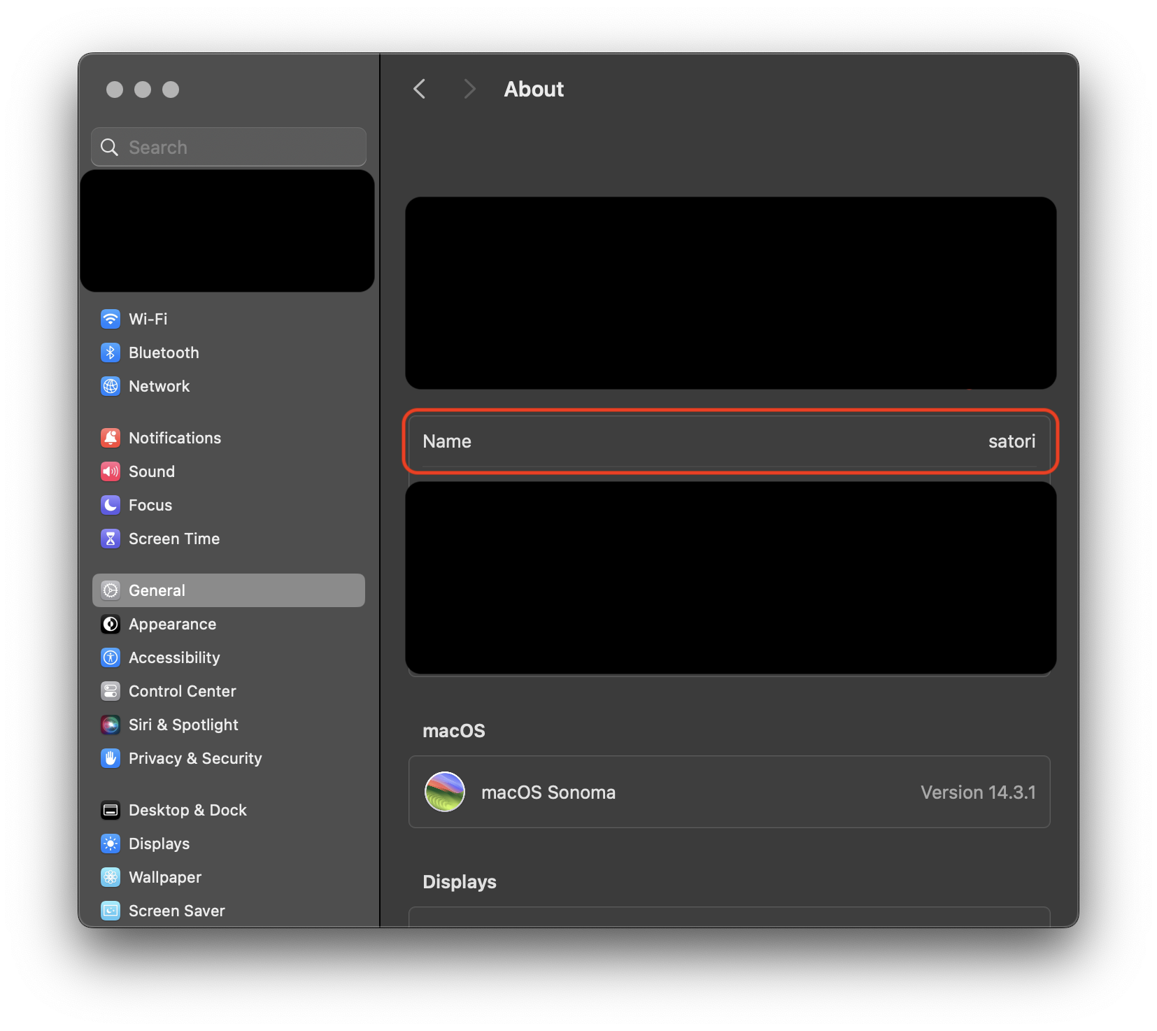 Settings > General > Sharing > Local hostname