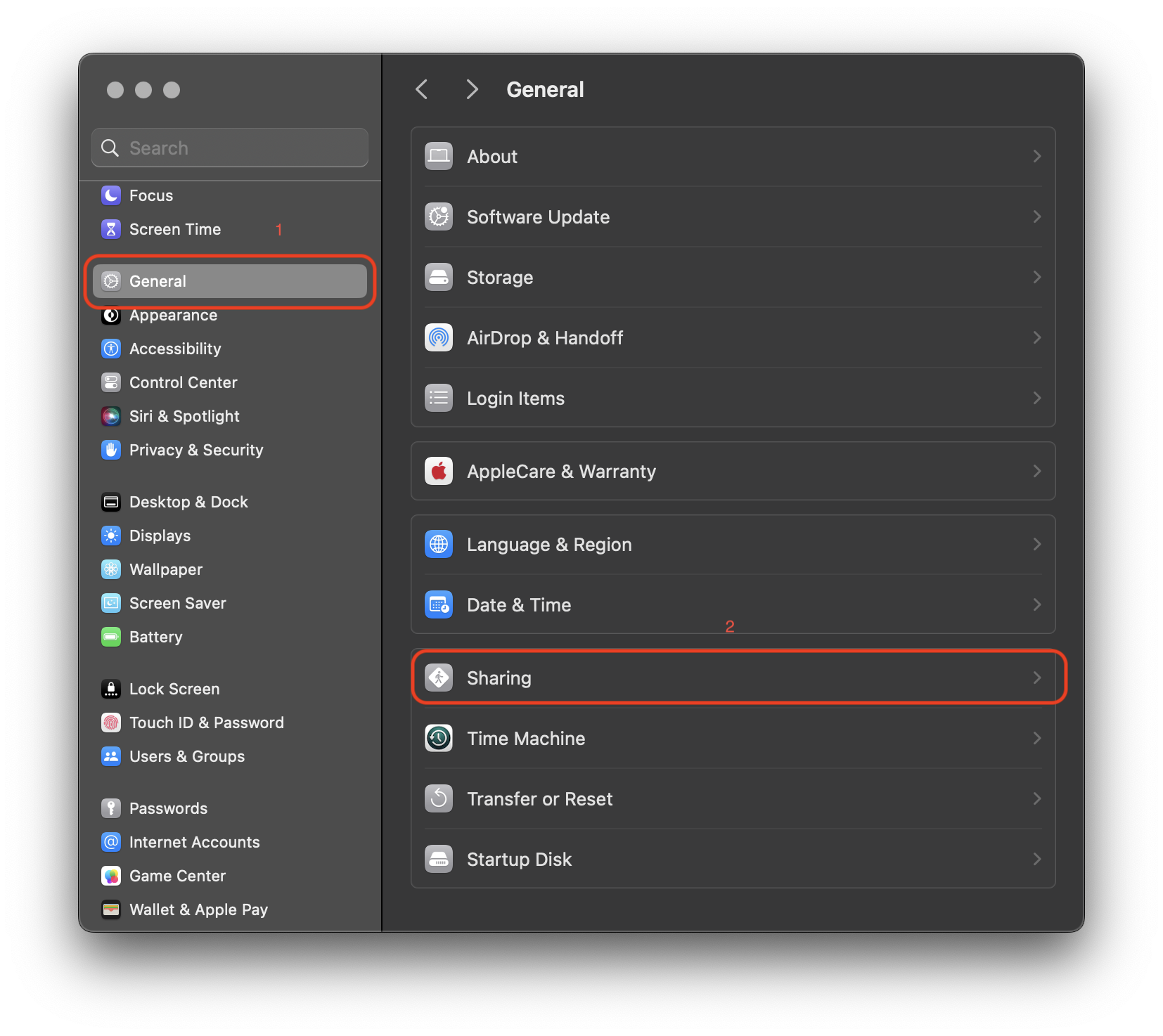Or under Sharing