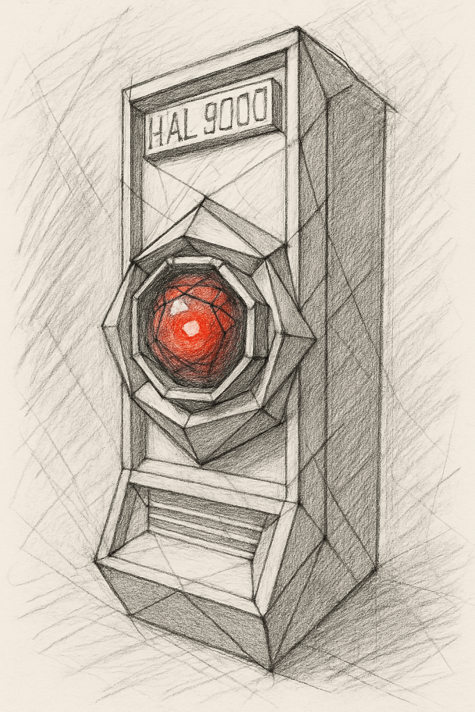 At the same time, there's something to be said about the opportunity to stand out as an AI tool that accepts its futuristic state and the design supports it. So, it got me thinking about a highly angular HAL.