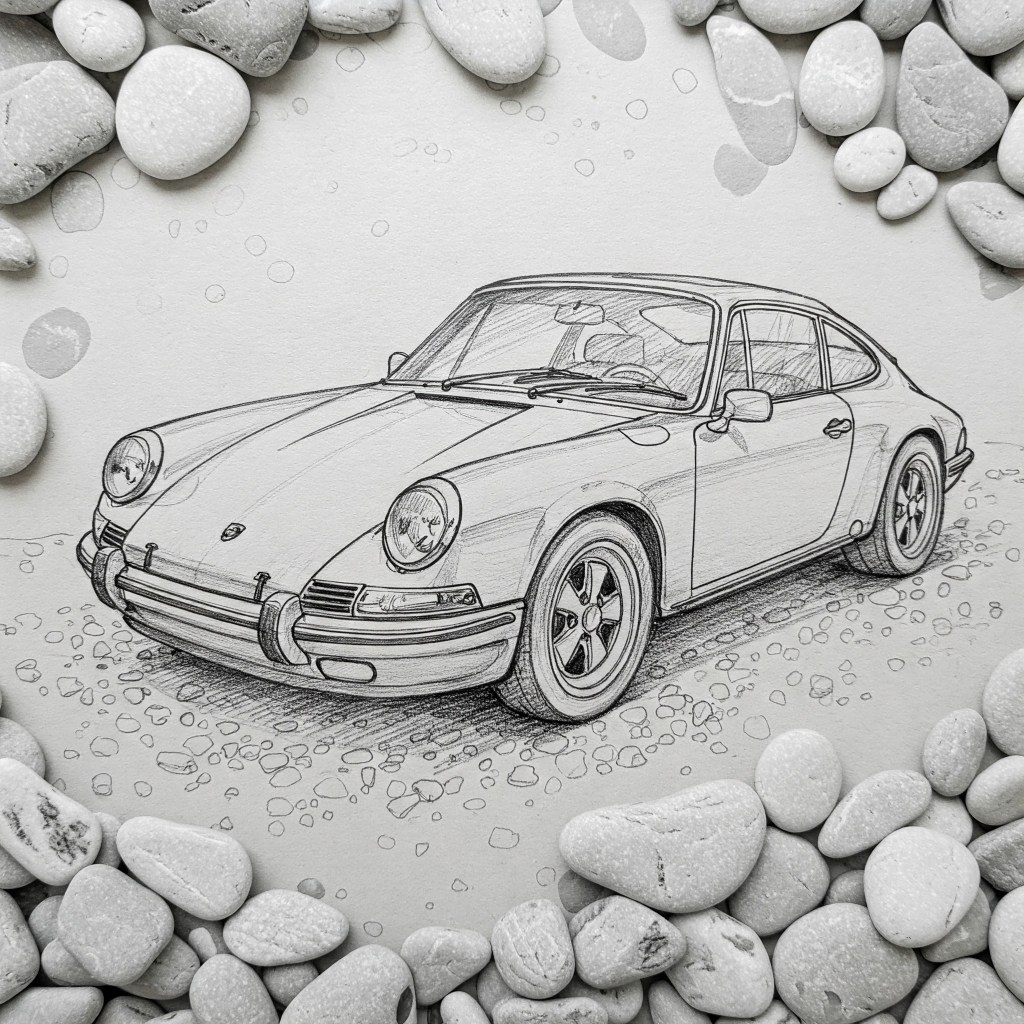 The best comparison for this was the porsche 911 (or most porsche cars) versus lamborghini designs. The porsche's design is more akin to a pebble with sweeping curves versus the hard angles of say a Lamborghini Gallardo.